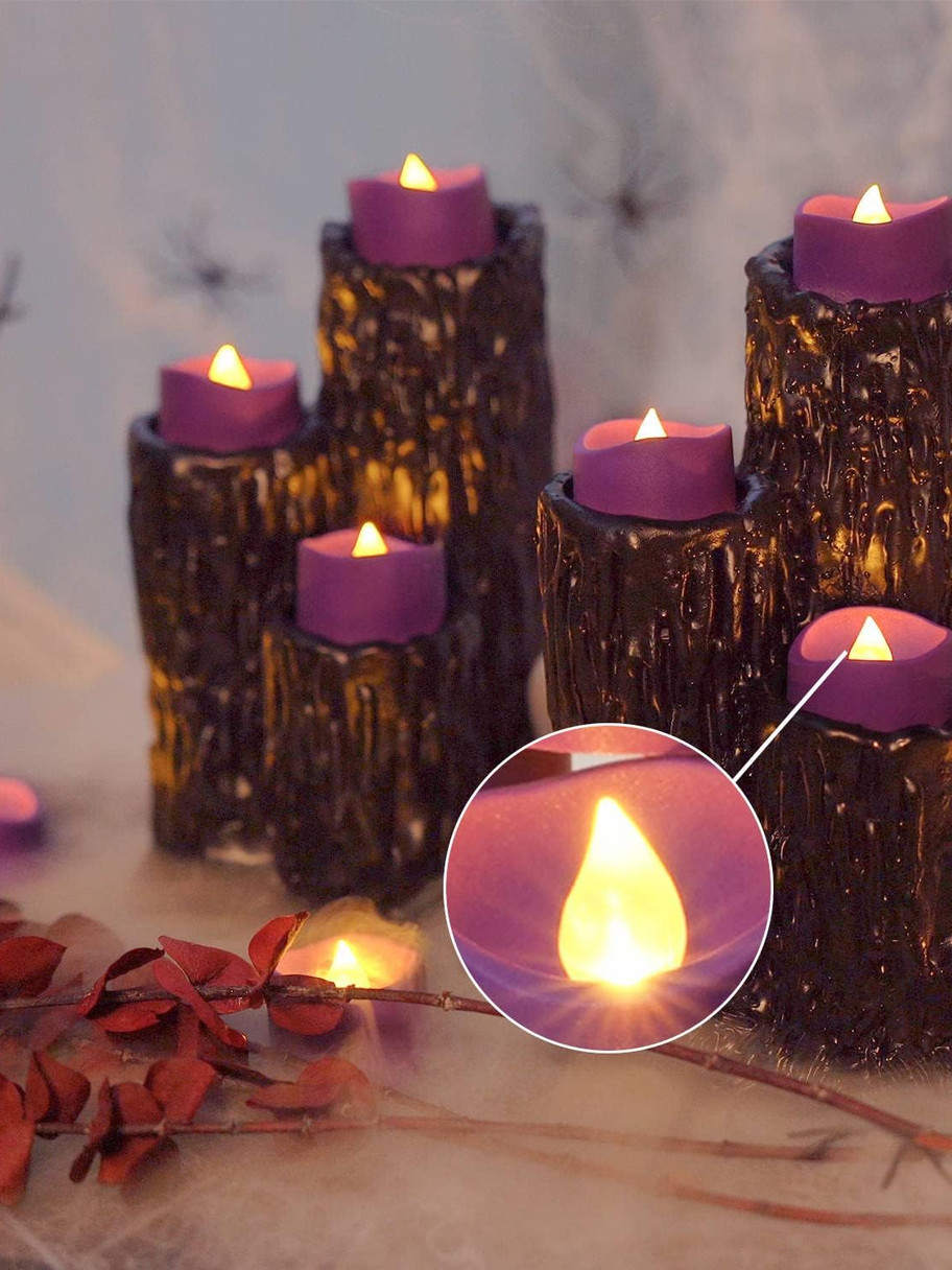 - WORK OUT OF THE BOX & LONG-LASTING: Homemory chooses high-quality batteries that have 1.5 to 2 times LONGER battery life than similar battery tealights. This has been recognized by many customers. It can ensure the purple tea lights candles work last throughout your Halloween.