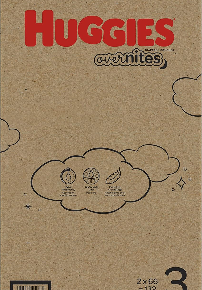 Huggies Overnites Nighttime Baby Diapers, Size 3, 132 Ct