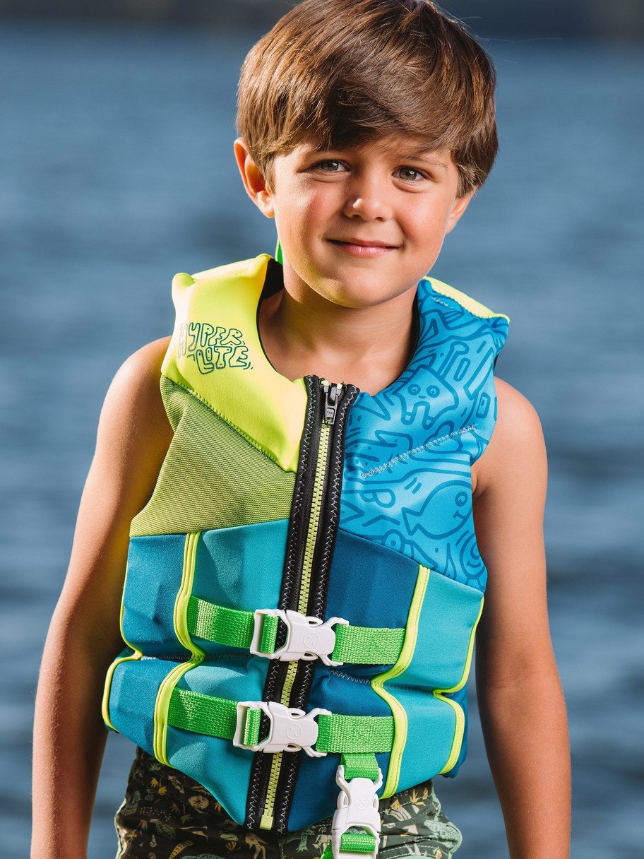 The vests utilizes our Fluid Flex, True Fit and Biolite technologies - just like the adult models. The wide neck hole and leg strap prevent the vest from riding up while being used. These combine to provide an incredibly breathable, flexible and lightweight vest. Designed with a eye-catching graphic scheme, this vest is sure to help your little one get comfortable with the water.
