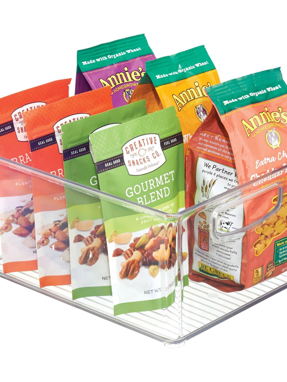 - Durable bin for storing packets, pouches, jars, cans, bottles and more