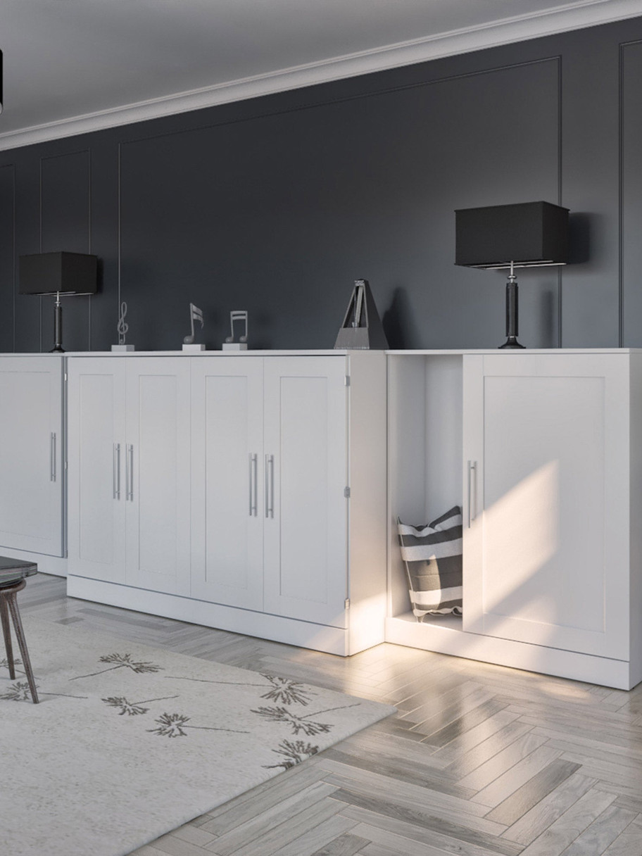 The Bestar Illusion Full Cabinet Bed with Mattress and Two Storage Cabinets is the perfect solution for creating a multipurpose guest room. The storage cabinets are the ideal place for your guests to store their belongings. Once you close this piece, it will look like an elegant sideboard that you can decorate the way you prefer.