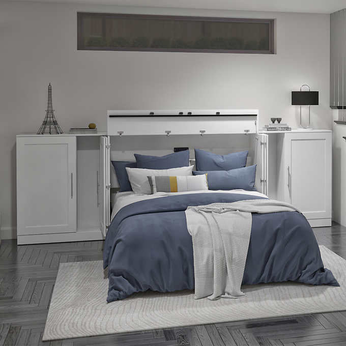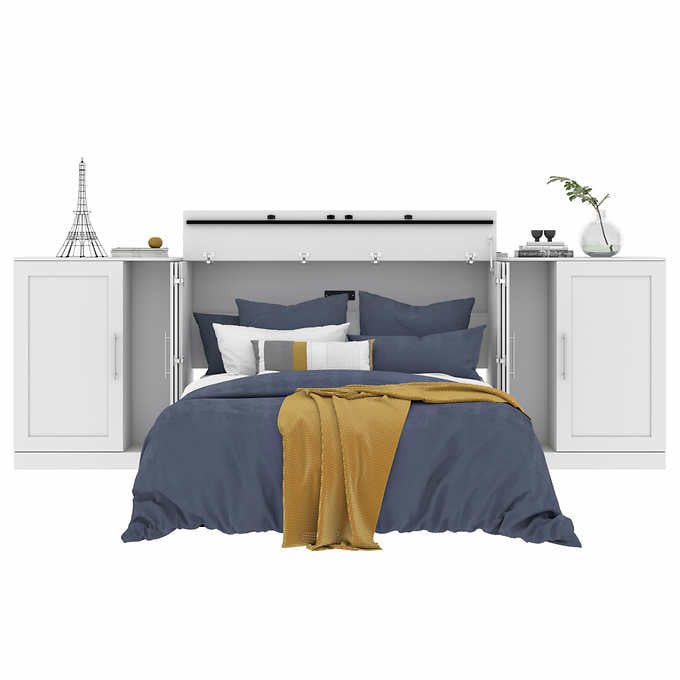 Set Includes: Queen Cabinet Bed with mattress, Two Storage cabinets