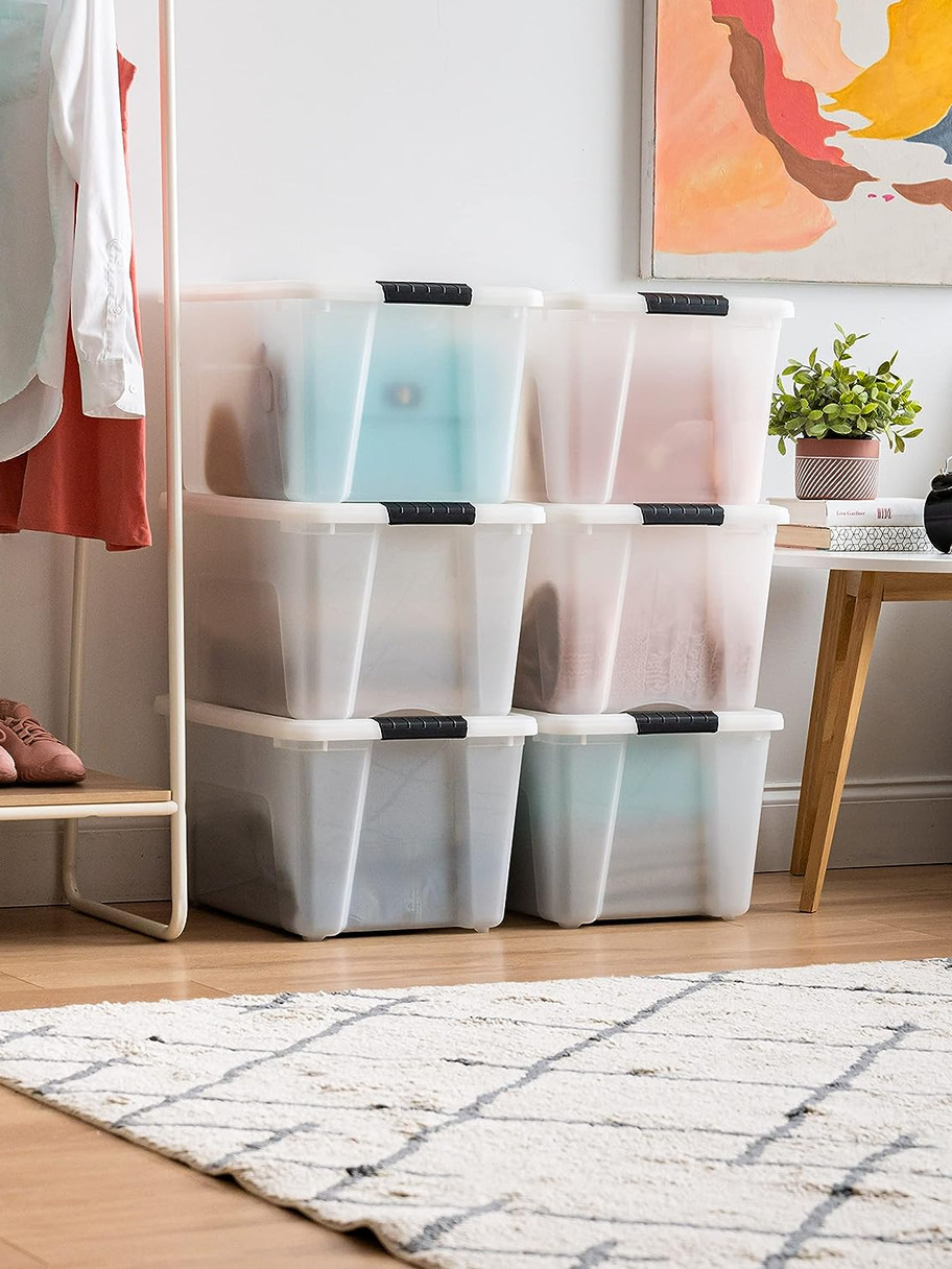 IRIS USA 40 Quart Stackable Plastic Storage Bins with Lids and Latching Buckles,