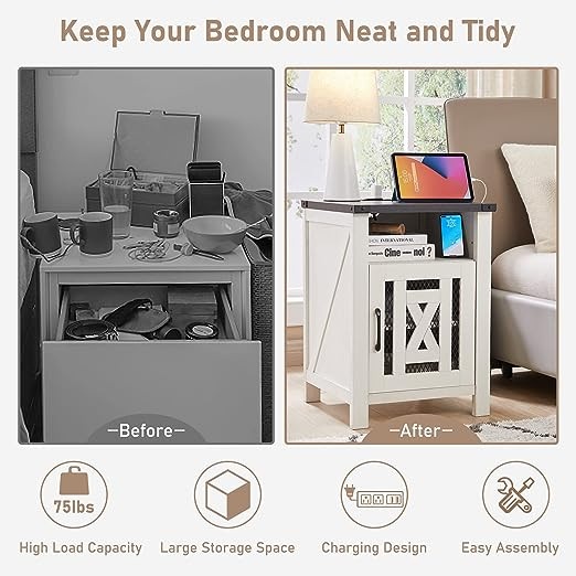JXQTLINGMU End Table with Charging Station, Beside Table with Stroage Cabinet an