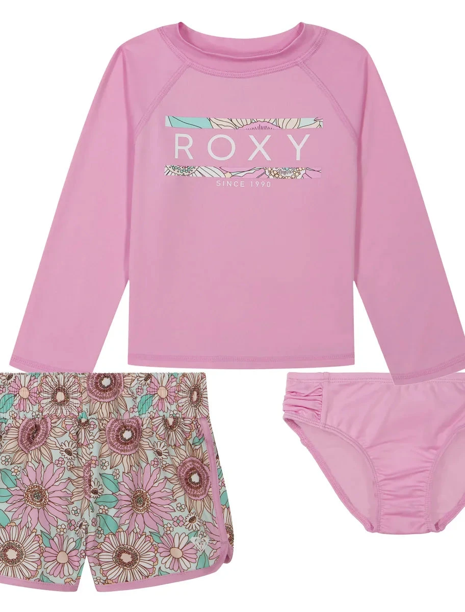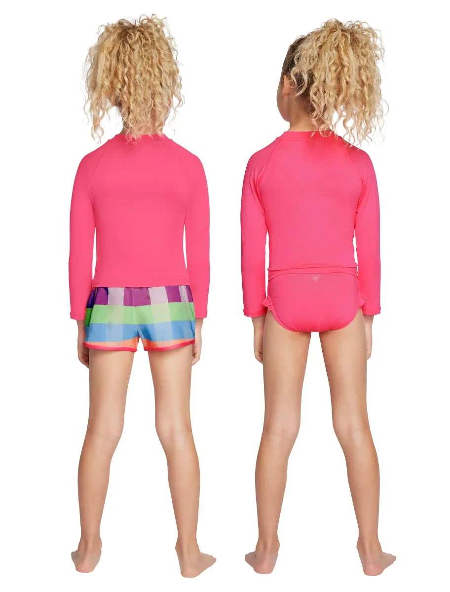 - Each set includes: (1) rashguard top, (1) bikini bottom, (1) short