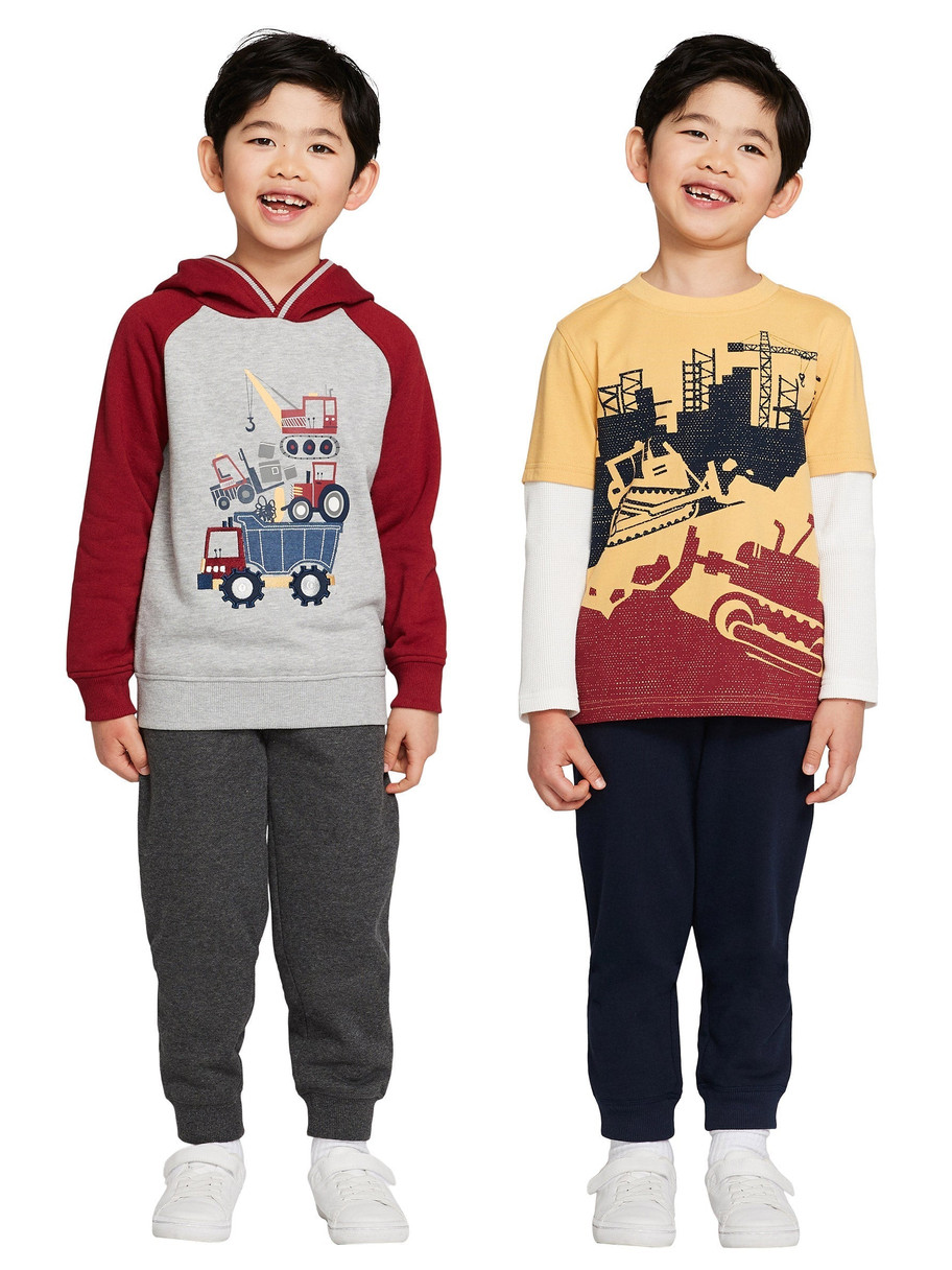 - Set includes: 1 raglan sleeve hoodie, 1 long sleeve tee, 2 fleece pants