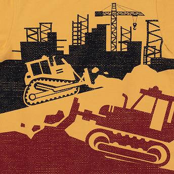- Yellow and white long sleeve shirt with large construction graphic on chest