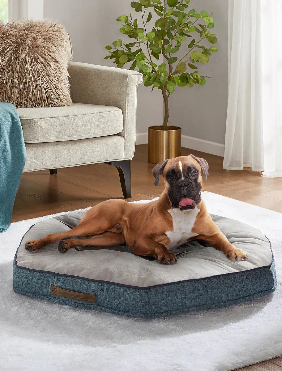 Treat your pet to a comfortable Kirkland Signature Hexagon Napper. Soft and supportive chopped foam base provides the perfect cushion for your pet. The pet bed with grade fabric enhances your home décor.