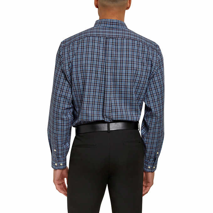 Kirkland Signature Men’s Traditional Fit Dress Shirt, Navy Teal Plaid