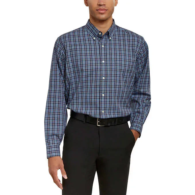 Kirkland Signature Men’s Traditional Fit Dress Shirt, Navy Teal Plaid