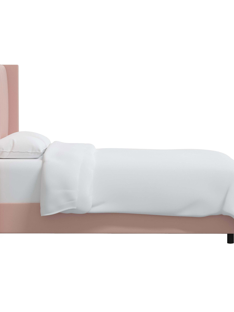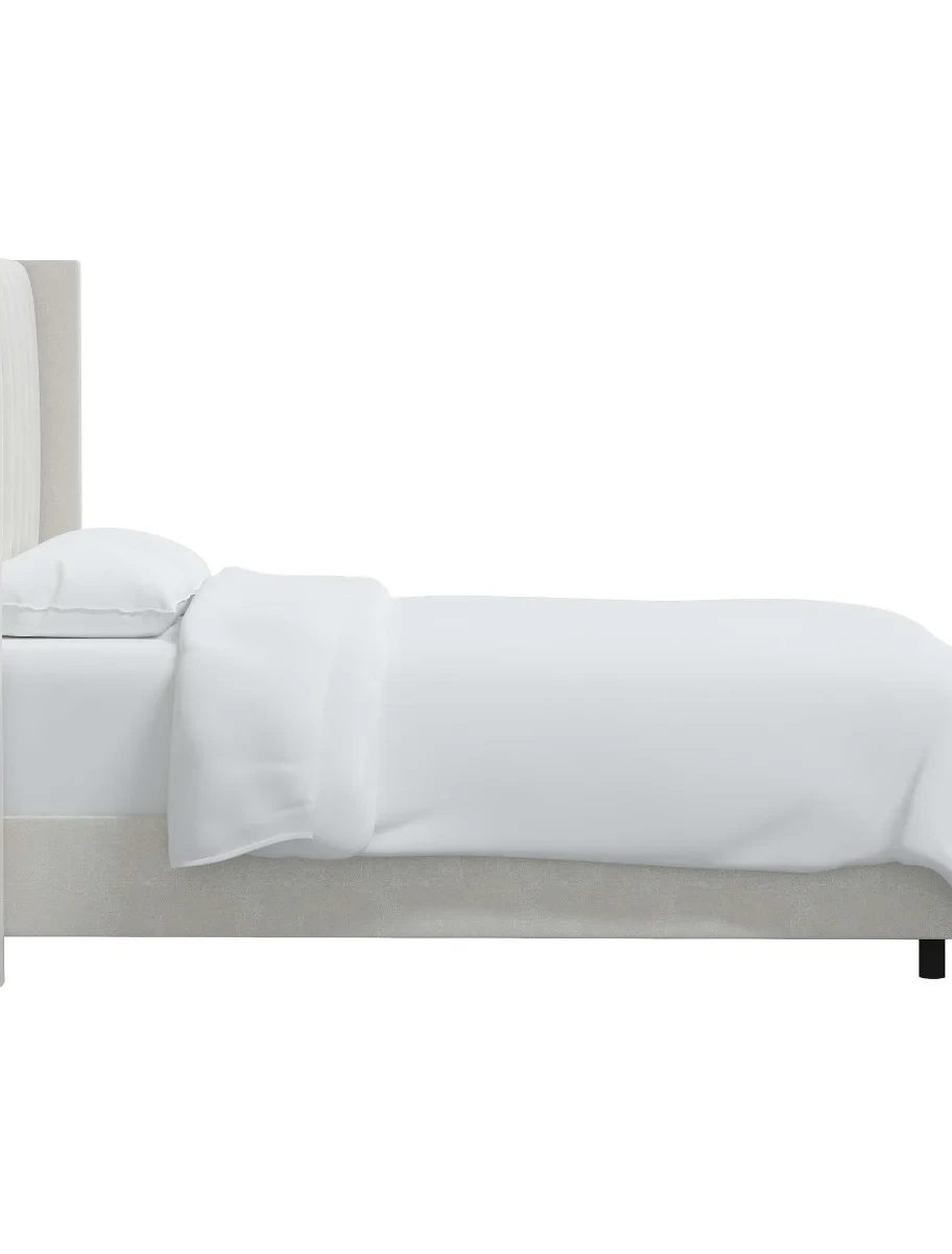- Comes complete with headboard, metal bed frame, and fully upholstered bed rails
