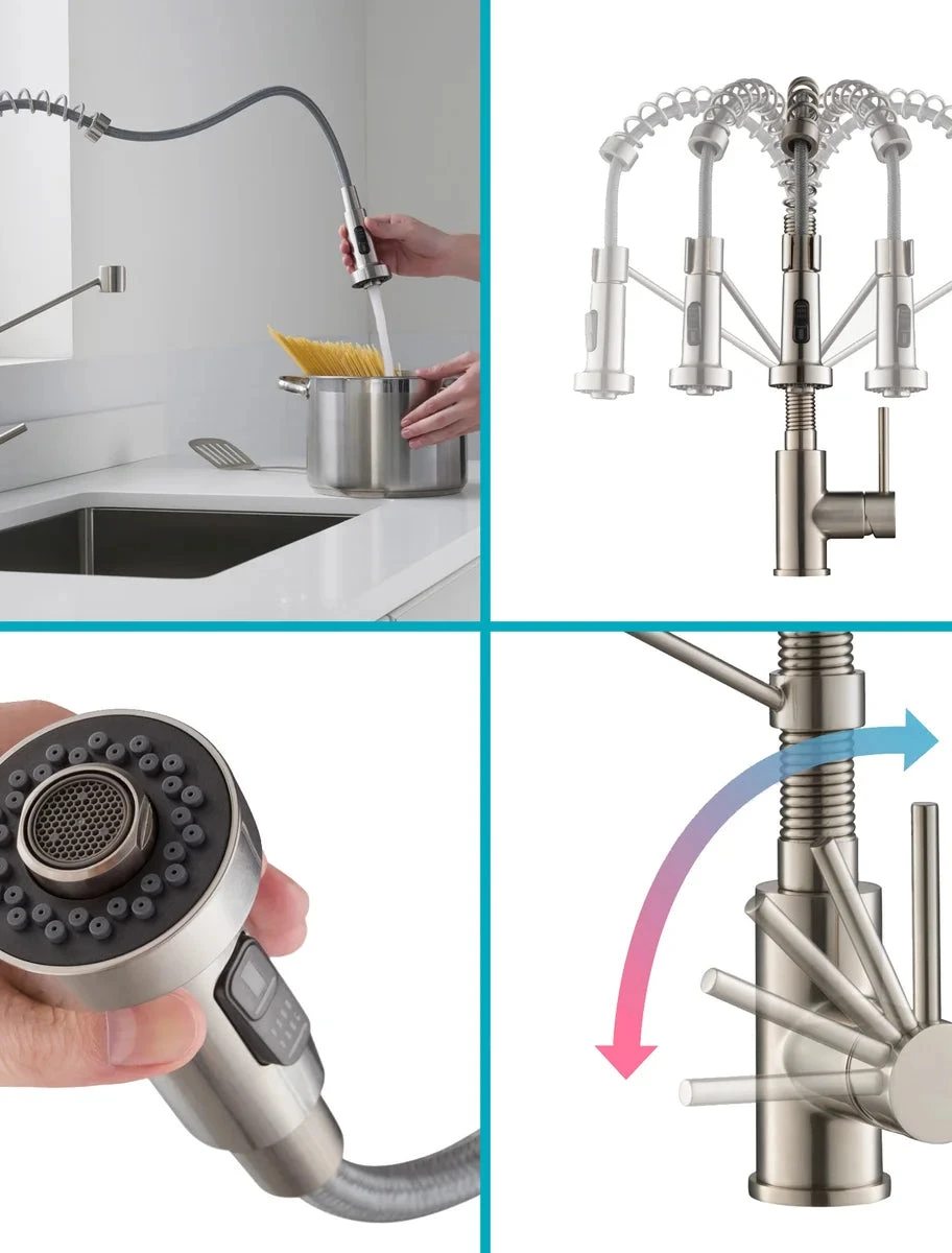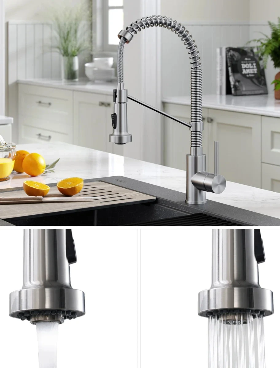 - Semi-Pro Kitchen Faucet With Dual Function Pull-Down Sprayhead