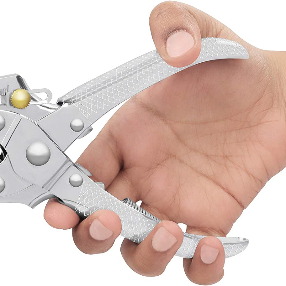 - EASY HAND OPERATION: These eyelet pliers are ergonomically designed to the shape of your hand and are easy to use. The spring-loaded and anti-slip handles will not strain your hands and the handles can be squeezed with ease. They are lightweight and rust-resistant due to their chrome finish. The clamp plier tools can press eyelets into materials such as plastic, acrylic, canvas, suede, fabric, rubber, chipboard, cardstock, thick book board, laminated cards and more.