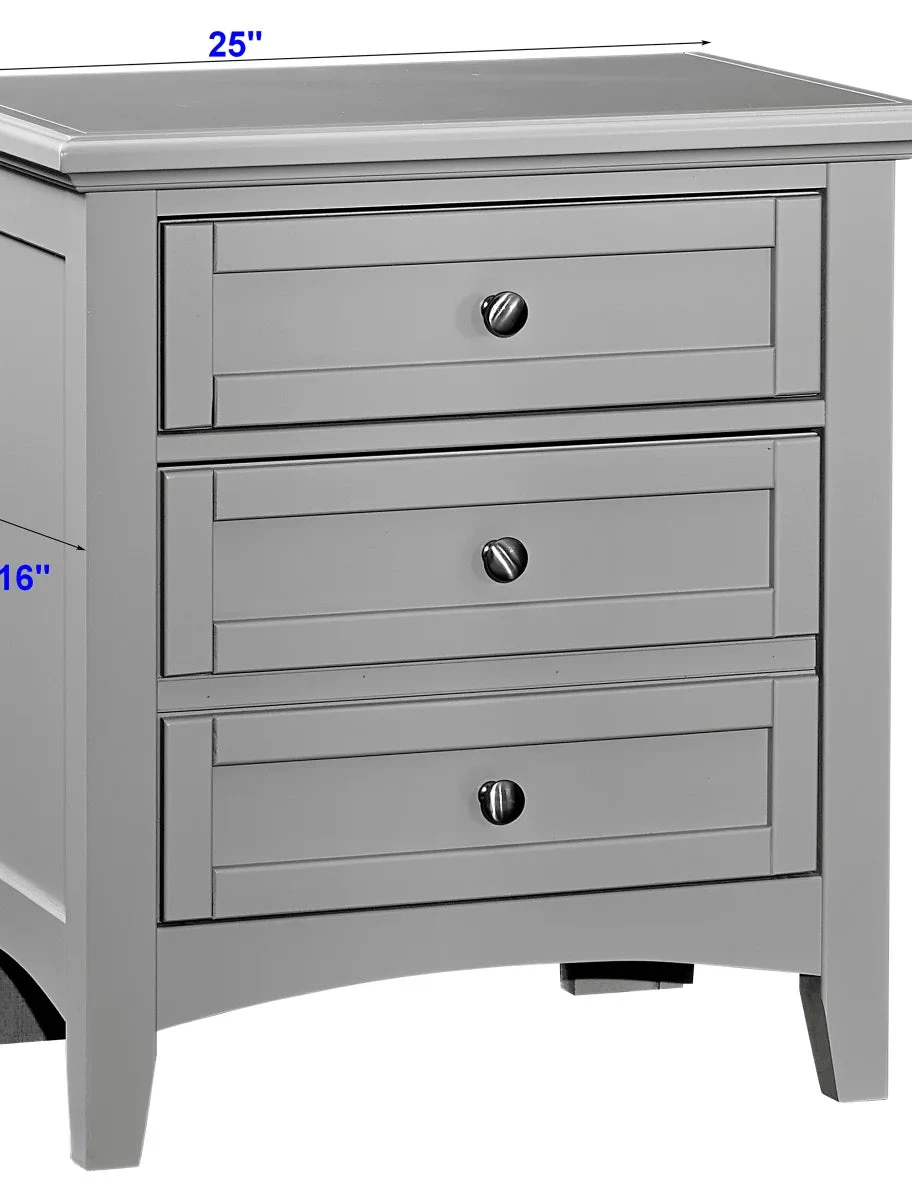 Nightstand Dimension: 25”W x 16”D x 27”H