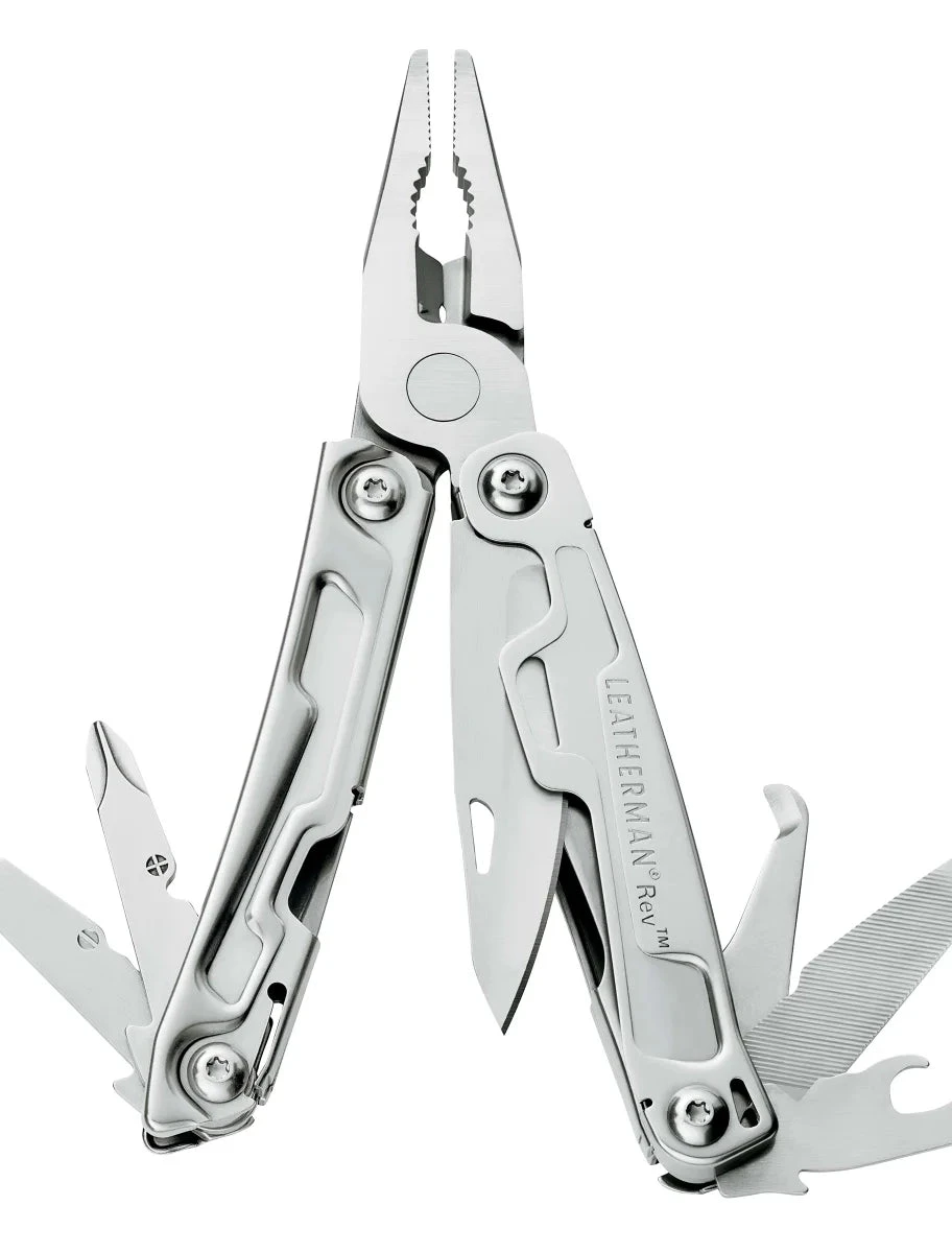 The Leatherman Rev allows you to grab a toolbox full of functionality and keep it at your fingertips, no matter where you might be: under the hood, at the campground, finishing honey-do projects around the house or cracking open a cold one at the tailgate. The Rev features 14 soon-to-be-indispensable tools, an outside accessible 420HC blade and a replaceable pocket clip for easy carry, and as always is backed by the Leatherman 25-year warranty.
