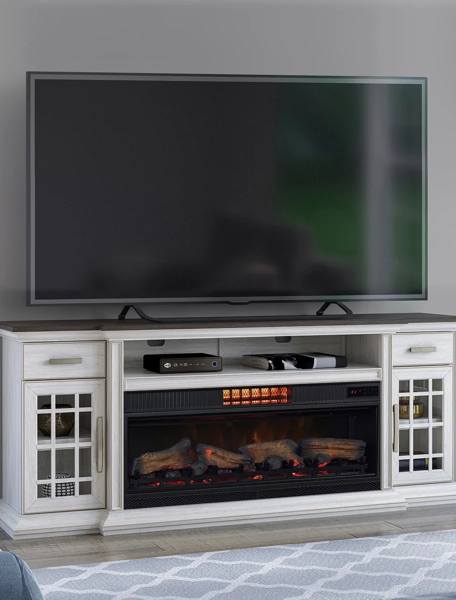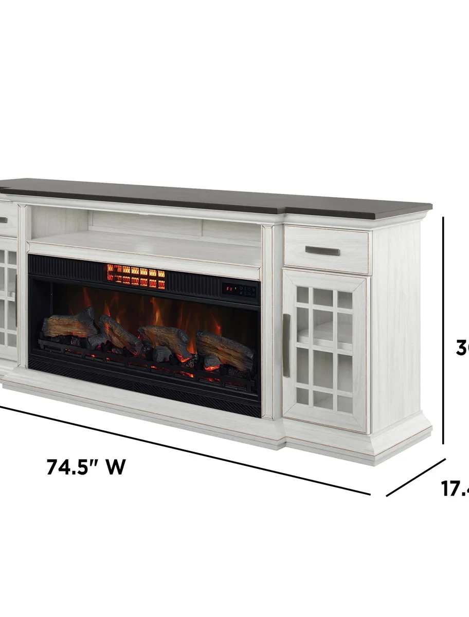 Turn up the heat. With this widescreen electric fireplace, cozy up your space at the flip of a switch. Crisp, linear woodwork and lifelike simulated stacked stone take this electric fireplace to the upper echelons of farmhouse chic. From the dining room to the family room, home office to the entry, this widescreen electric fireplace warms up a lived-in look. True to life. This electric fireplace saves energy with long-lasting, cost-effective LED bulbs, while igniting ambience with realistic flames and supplemental heat. No professional installation required, simply plug into any standard outlet. Control from your favorite easy chair with the easy-to-use remote control. When you crave the look, but not the heat, turn on just the flames and enjoy year-round.
