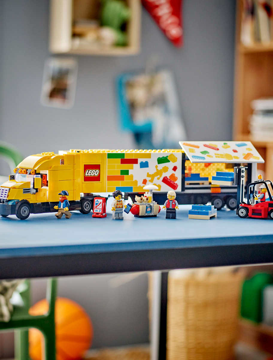 - Includes Yellow Delivery Truck, Toy Forklift and Hot-dog Stand
