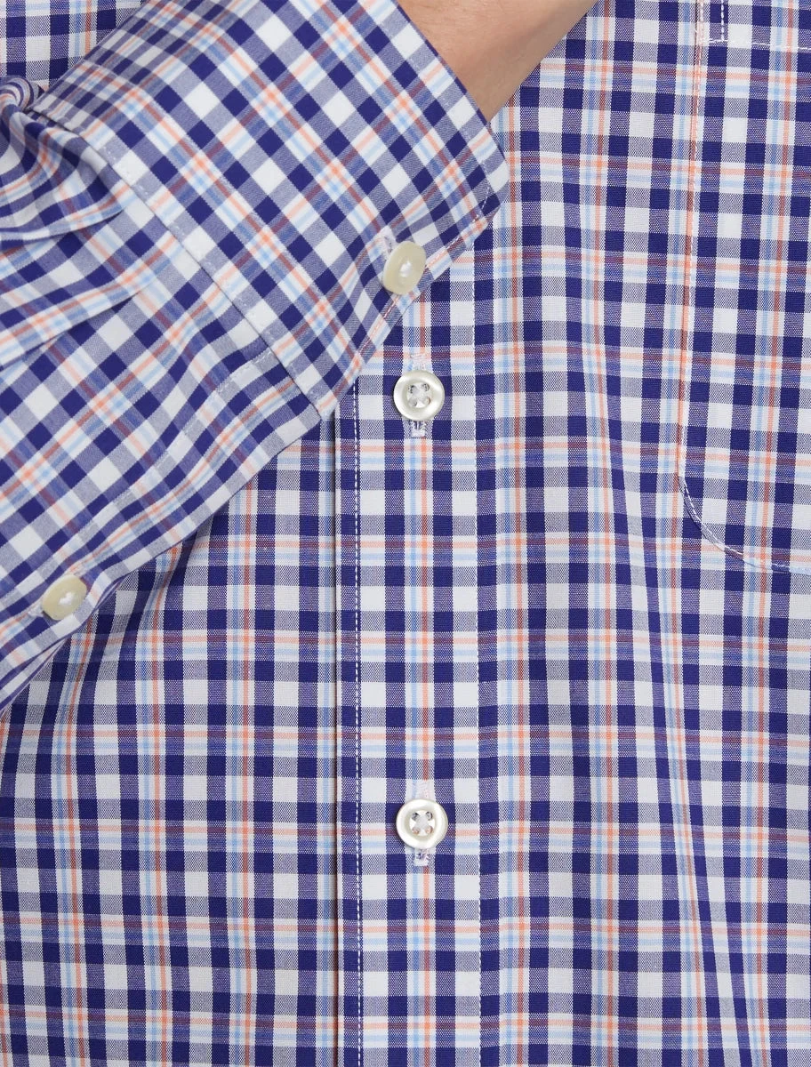 Men’s Traditional Fit Dress Shirt, Navy Orange White Plaid