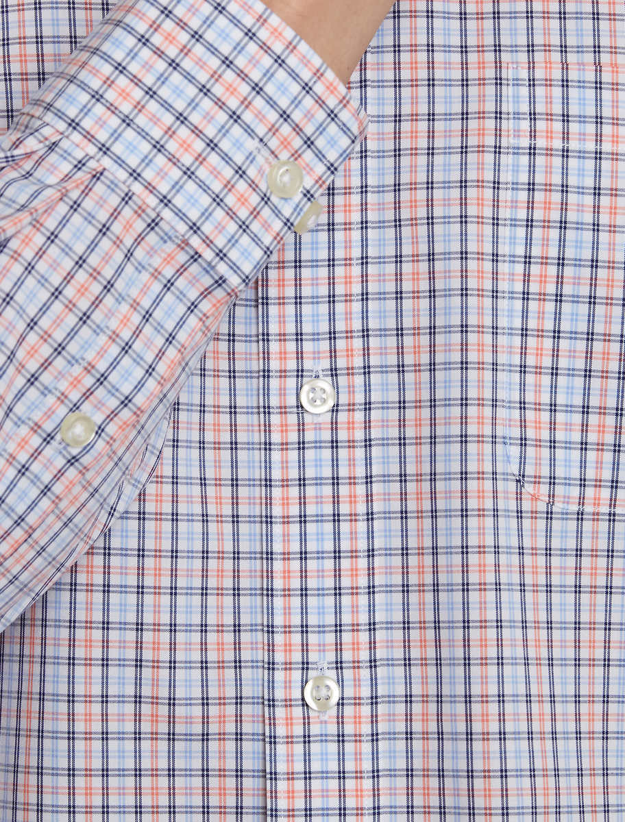 Men’s Traditional Fit Dress Shirt, Navy Orange White Tattersall