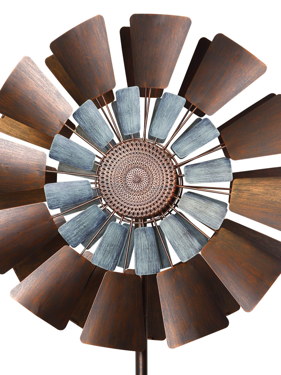 A stunning combination of simple geometric shapes, this wind spinner will be the perfect focal point in any outdoor area. The hand-applied, two-tone finish of antique copper and verdigris is UV and weather-resistant for long lasting wear.