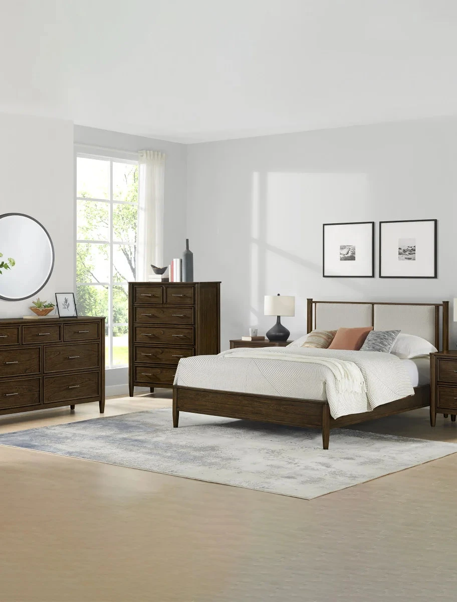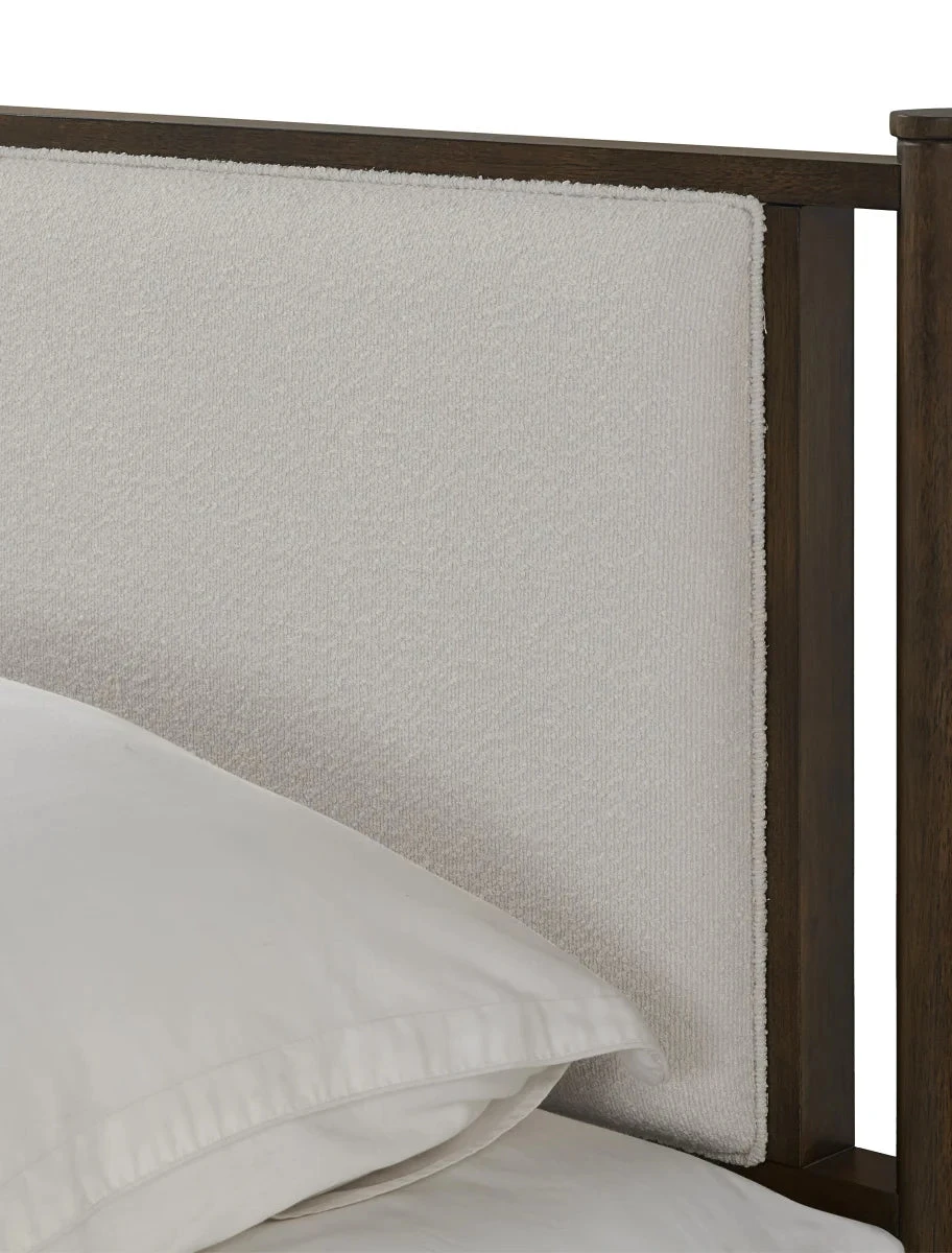 Bedtime will never be the same with the Millbrook Queen size bed. Millbrook makes a statement with its sleek design and Modern Java multi-step hand applied finish. The headboard is accentuated with a beautiful boucle fabric that truly sets this apart. Not only does Millbrook look great but is also built to last featuring solid rubberwood and mindi veneer. It also includes a durable platform mattress support system for the utmost in support and comfort. Millbrook truly will make your bedroom special.