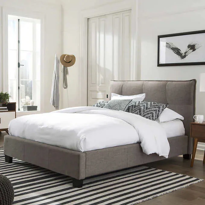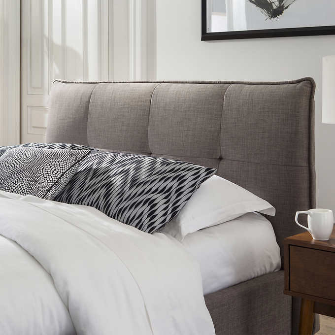 The Mirrea Upholstered Storage Bed features hidden footboard storage; the headboard is paired with a tufted fabric that is surrounded by piping and flanged corners for a twist of flair. Designed for use without a box spring, the bed can support a mattress and weight up to 800 lbs. The headboard is 4 feet in height, and the rails and footboard are low profile atop the wooden spade feet. Setup is easy, and its bonus of footboard storage features a finished drawer box with divider and full-extension ball bearing glides. As dust and dirt cause fabric to wear quicker, it is recommended you vacuum regularly with an upholstery attachment.
