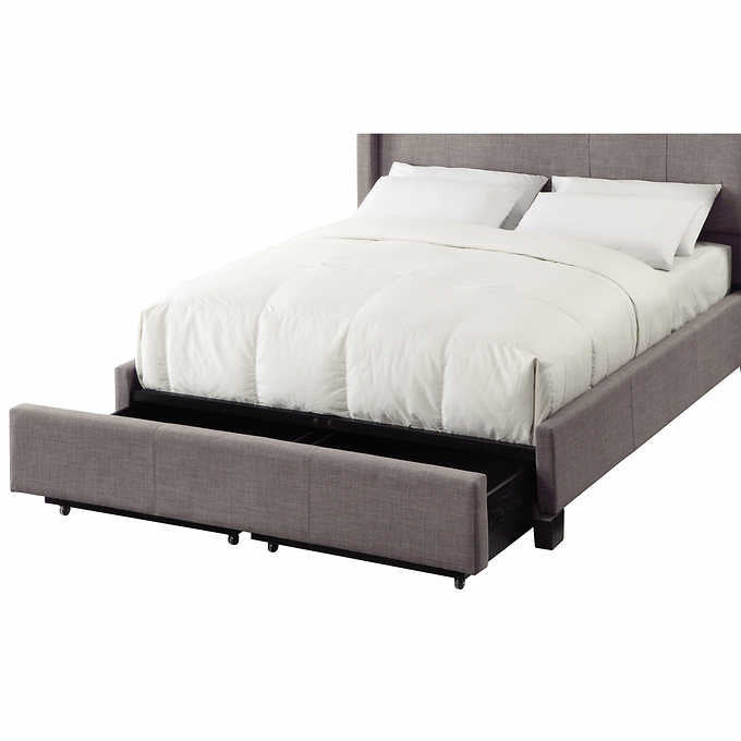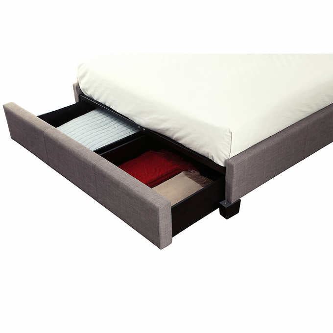 - Includes complete storage bed with headboard, storage footboard, side rails, platform bed mattress support slats and center support.