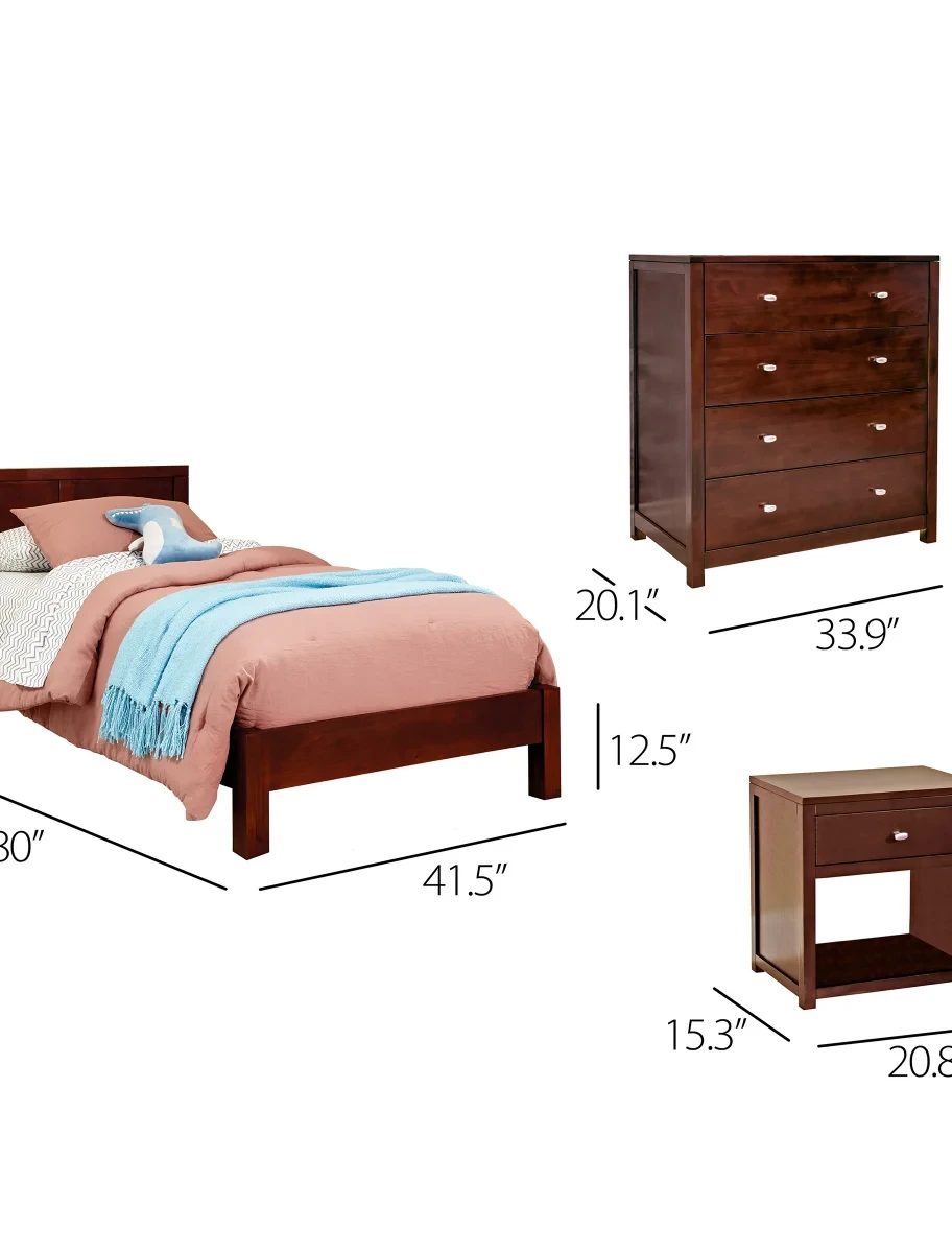 3-piece Includes: Twin Bed, Nightstand, and Chest