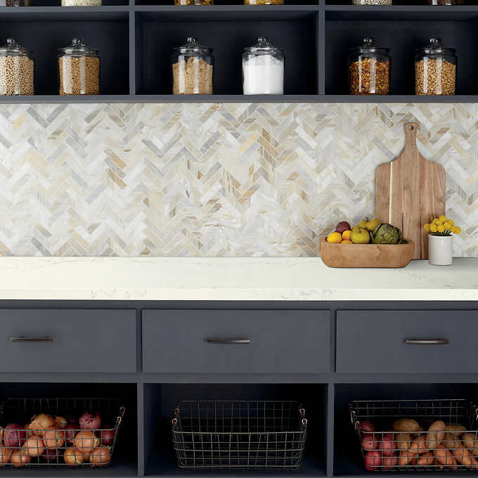 Mohawk Sublimity stone mosaics offer an exquisite design and authenticity reminiscent of Mother Nature’s own creation. The elegant geometric patterns, crafted from natural gray and white stone, effortlessly bring a touch of luxury to living spaces while providing easy access to refined details that set these spaces apart. Mohawk Sublimity delivers the everlasting beauty of authentic marble. This beautiful mosaic tile is the perfect addition to any space and it is suitable for walls and floors, as well as shower floors. Mohawk Sublimity Herringbone Honed Marble Namaste Mosaic is easy to clean, durable, and stain resistant, making it the perfect addition to any space.