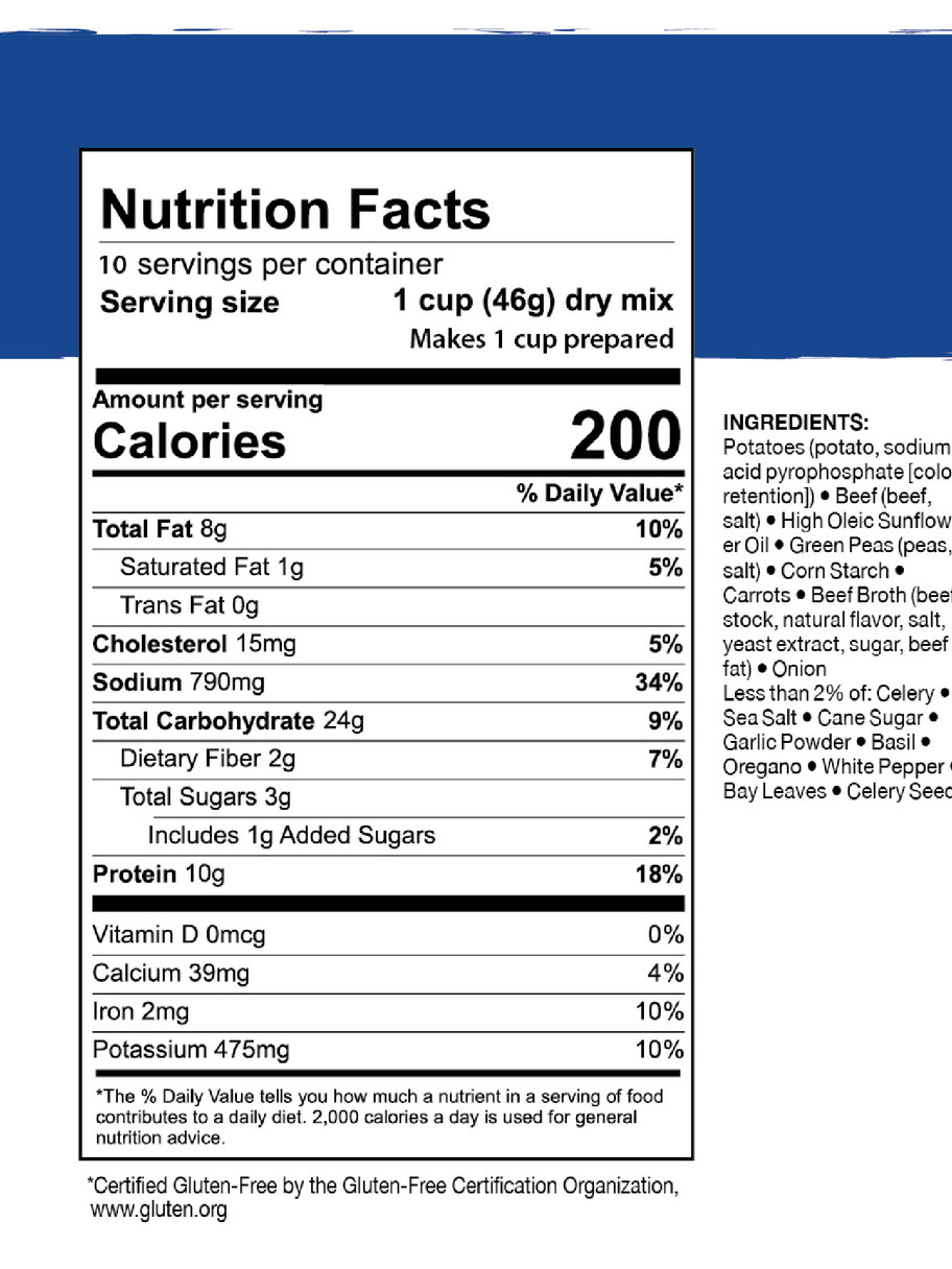 Emergencies can come in many forms. Sometimes it involves a power outage and sometimes it’s unexpected guests. Either way, we’ve got you covered. Simply add hot water to the can and in less than 10 minutes, you’ll have a delicious meal that will feed the whole family! This hearty stew is made with all natural beef, potatoes, carrots and contains no artificial flavors or colors. Plus, it’s certified gluten-free by GFCO. Delicious and hearty, store away this case of stew for an emergency, or to feed the family on your next camping trip. Case includes six total #10 cans or 60 total servings.