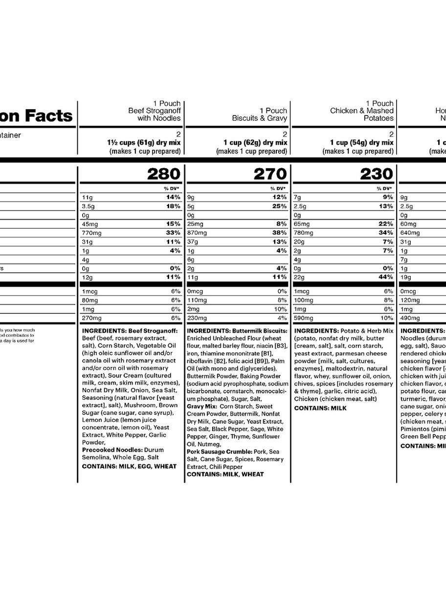 Exclusive only to Costco members, the Mountain House Homestyle Outdoor Meal Kit includes:- (2) Beef Stroganoff with Noodles (4.3 oz. Net Wt./Pouch)