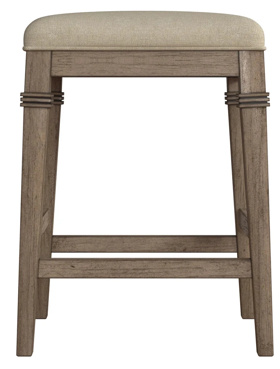 The Naylor Backless Counter Stool is understated and unassuming. Available in a Black or Beige Gray distressed finish. Subtle carved accents add a dash of personality to this otherwise simple stool. A plush upholstered seat shows attention to detail in the welt piping, adding elegance and refinement. And the perfectly placed footrest offers maximum comfort.