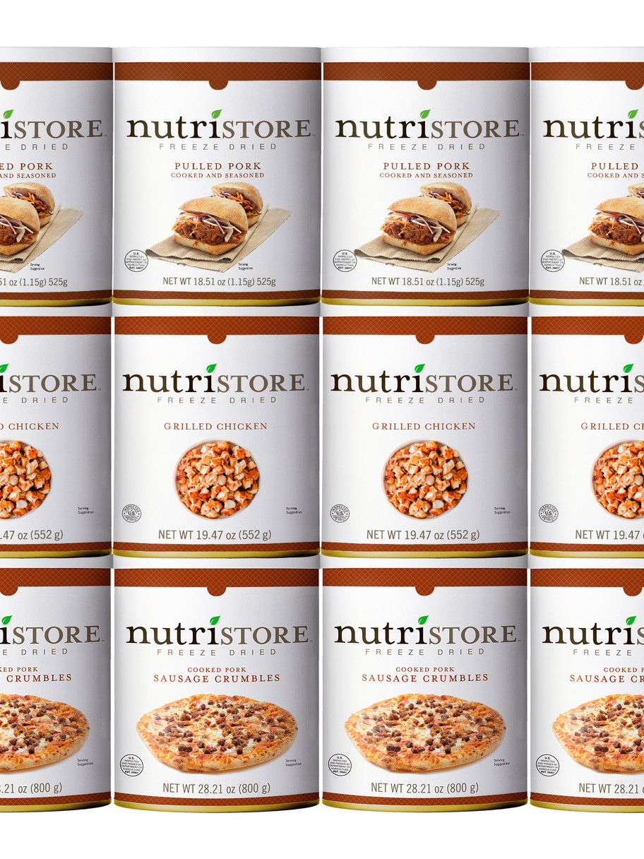 With an optimal amount of protein and servings per can, this deluxe bulk freeze-dried combo of pulled pork, grilled chicken and sausage crumbles is easy to store long-term and simple to rehydrate. Nutristore® freeze-dried meat is ideal for lightweight DIY camping and backpacking meals or to use in survival situations. The perfect addition to your emergency survival food storage! Simply create an instant healthy meal and use it in all of your favorite recipes such as; chili, tacos, pasta, stews, soups, alfredo, stir-fry or enchiladas. Just add water and enjoy! All of our Freeze-dried Meats are ideal for a long-term bulk food storage supply. We make sure our #10 Cans are properly sealed to last the tests of time and packaged to be easily handled and stored, keeping your food safe and secure for up to 25 years. True peace of mind comes from knowing you have all the necessities when the unexpected happens!