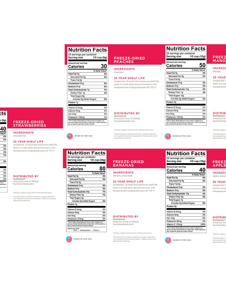Nutristore™ is a brand focused on providing the best tasting nutritional freeze-dried and emergency food products. We offer a wide selection of high-quality and nutritious freeze-dried food. We start by sourcing our foods from the best suppliers and ensure the quality and nutrients in the food is not compromised through our unique freeze-drying and packaging processes. Our goal is to provide you with great-tasting food that is nutrition-focused, budget-conscious, and shelf-stable.