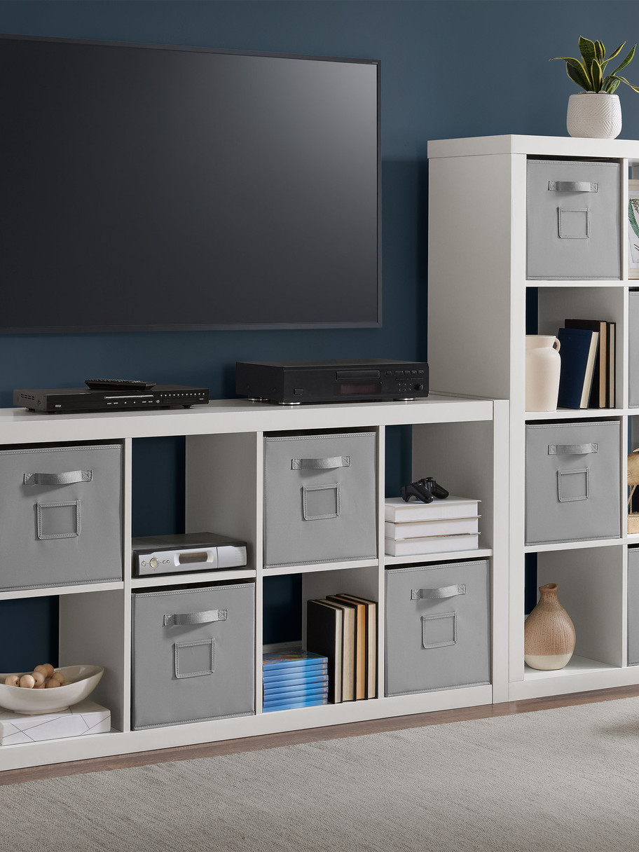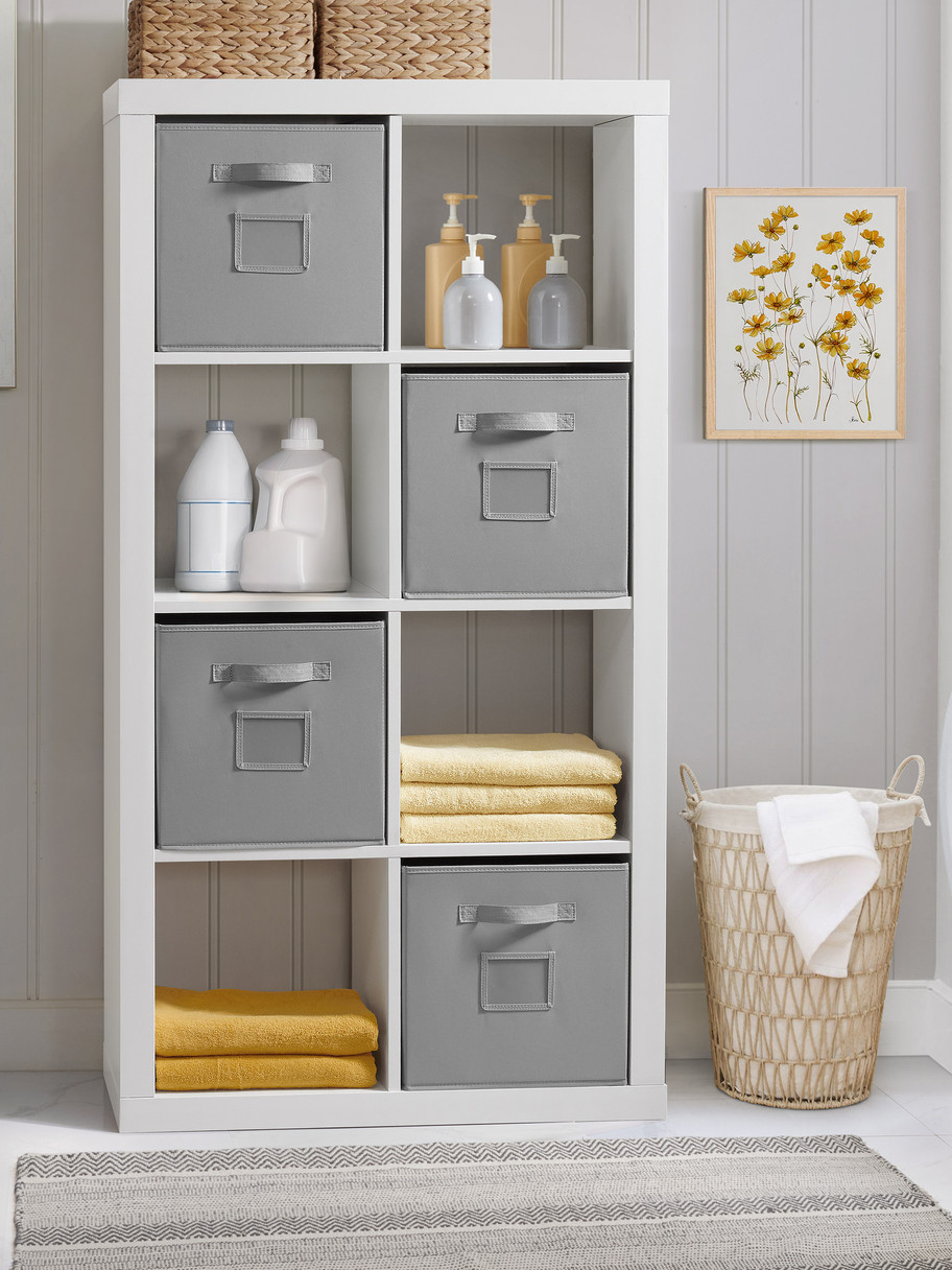 - Includes eight fabric bins with handles