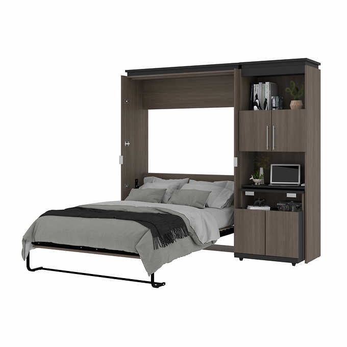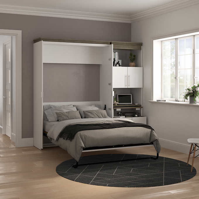 The Bestar Orion Full Wall Bed and Shelving Unit with Fold-Out Desk is the perfect solution for creating a multipurpose room. By day, you can have a functional home office and by night, a comfortable and stylish guest bedroom. Make the most of your space and keep everything organized to your liking with this unique bundle.