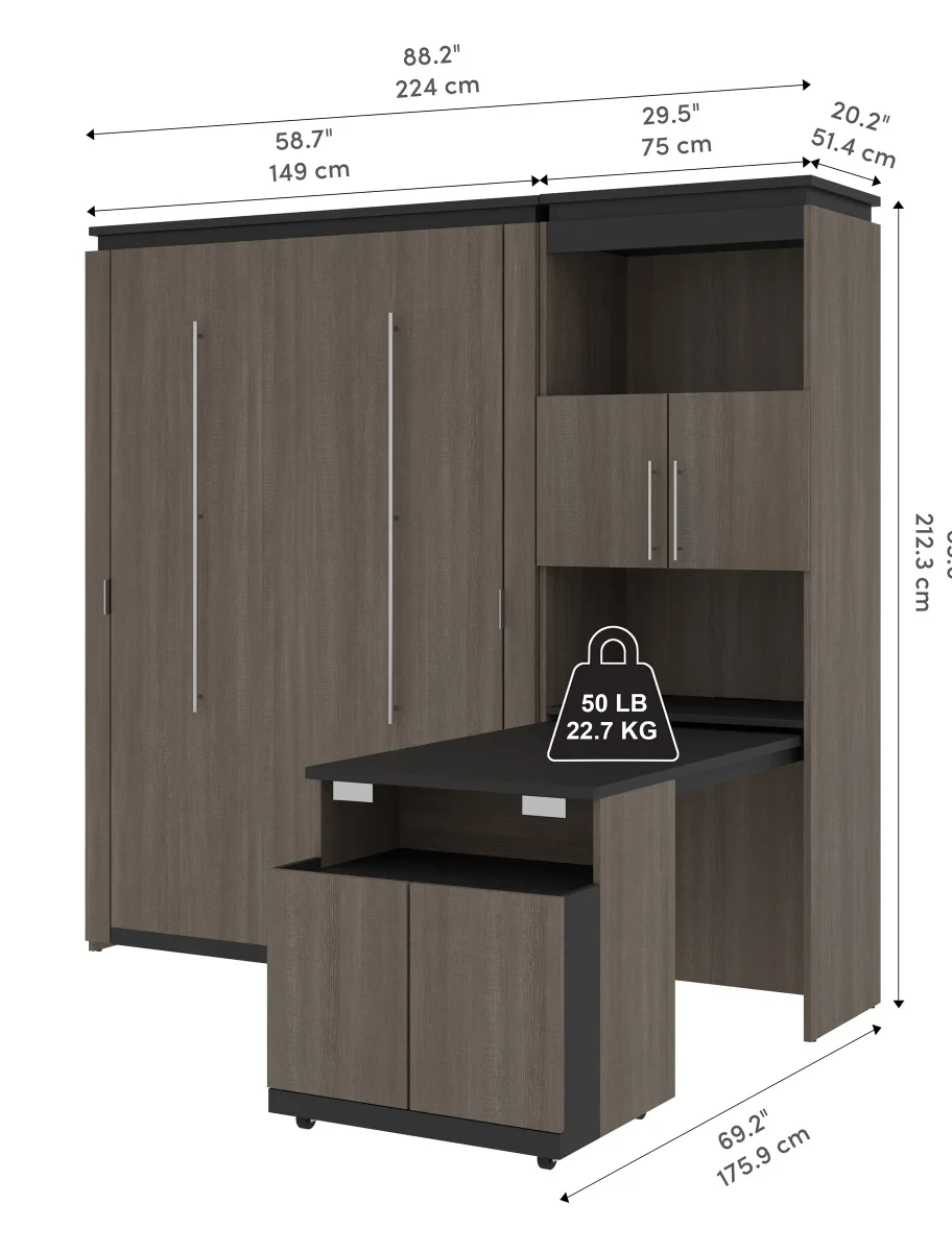 - Full Wall Bed: 58.7" W × 20.3" D × 83.6" H