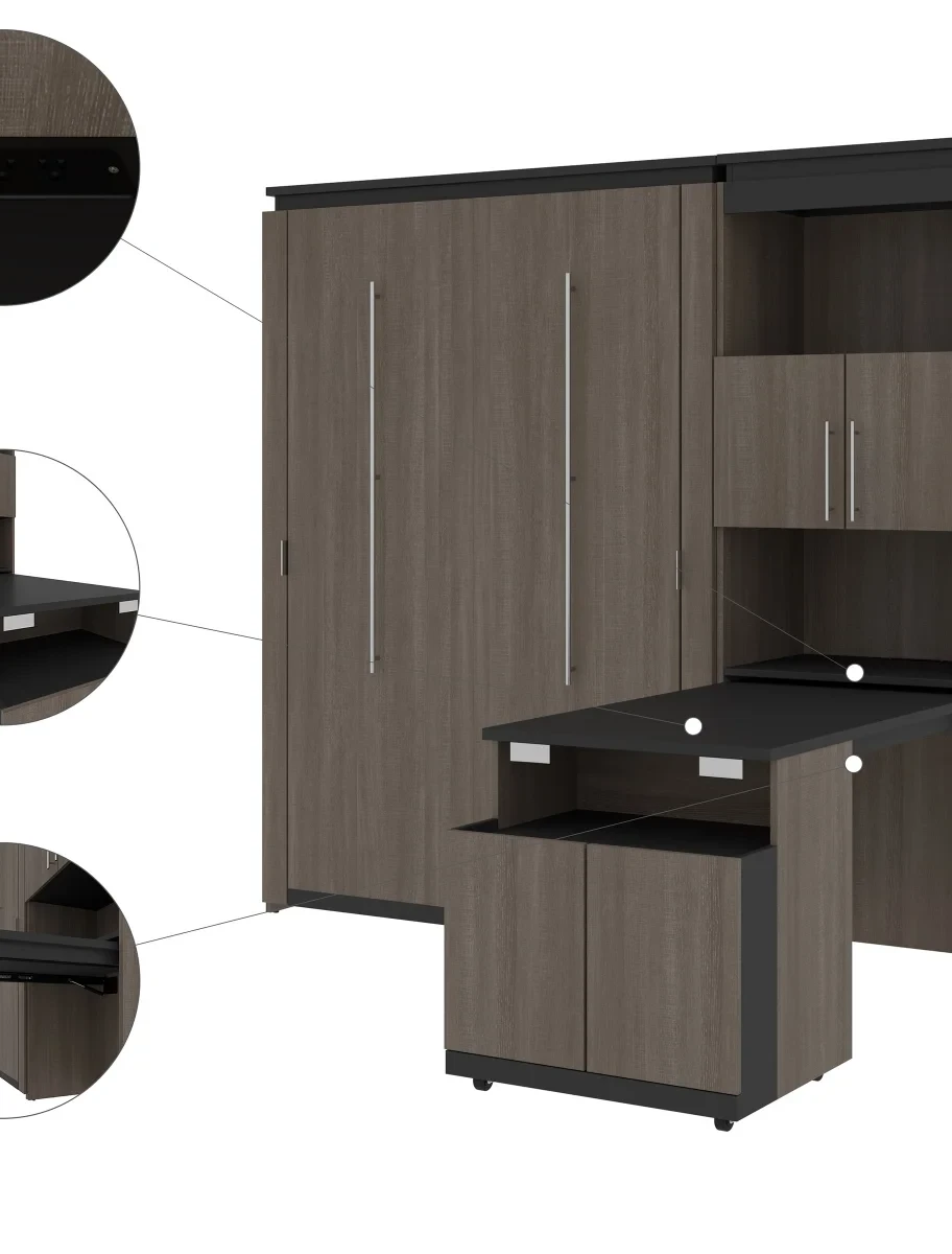 Orion Full Wall Bed and Shelving Unit with Fold-Out Desk