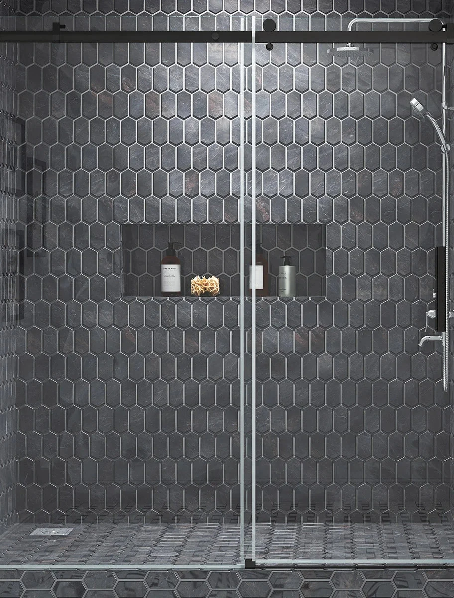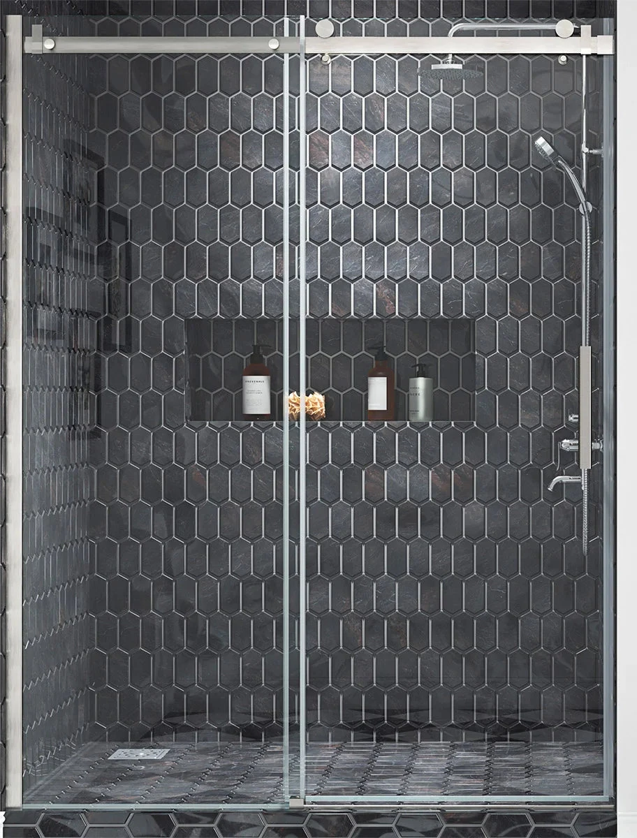 OVE Decors Kelsey Shower Door in Matte Black or Satin Nickel