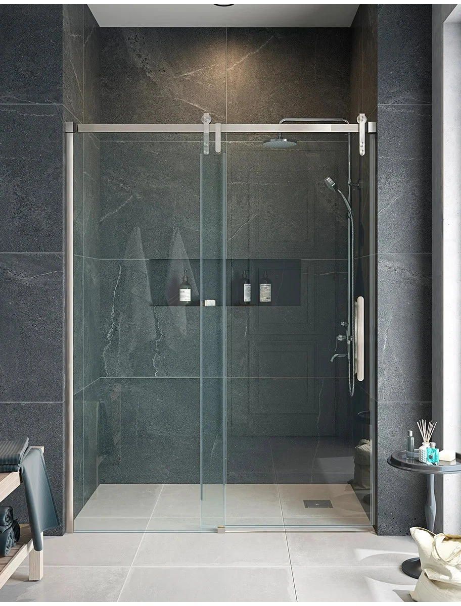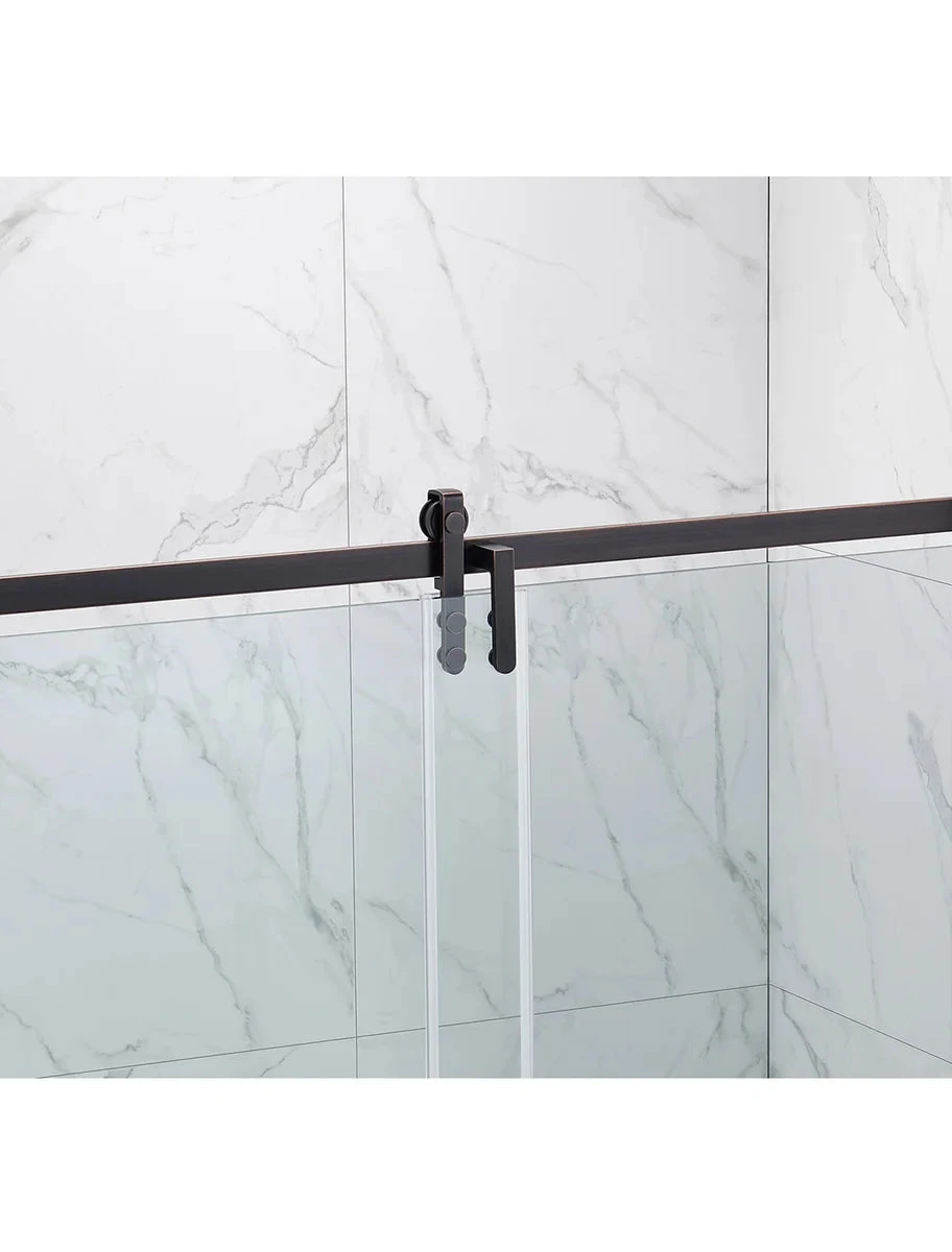 Looking for sleek, streamlined and super cool in your bathroom remodel? The search ends here with the Sheffield sliding barn door shower by OVE Decors. The Sheffield Collection is available in 48 and 60 in. with Oil Rubbed Bronze and Satin Nickel finishes. Eye catching exposed top roller wheels with button rivet details glide smoothly along the seamless floating upper bar for an ultra-modern engineered look. The rich Oil Rubbed Bronze and Satin Nickel finish both contrast with crystal clear doors for a floatingly transparent yet arrestingly anchored contemporary design, complete with chic 14 1/2-inch tall bar handles. Available in two finishes, with reversible installation to the opening on the right or left.