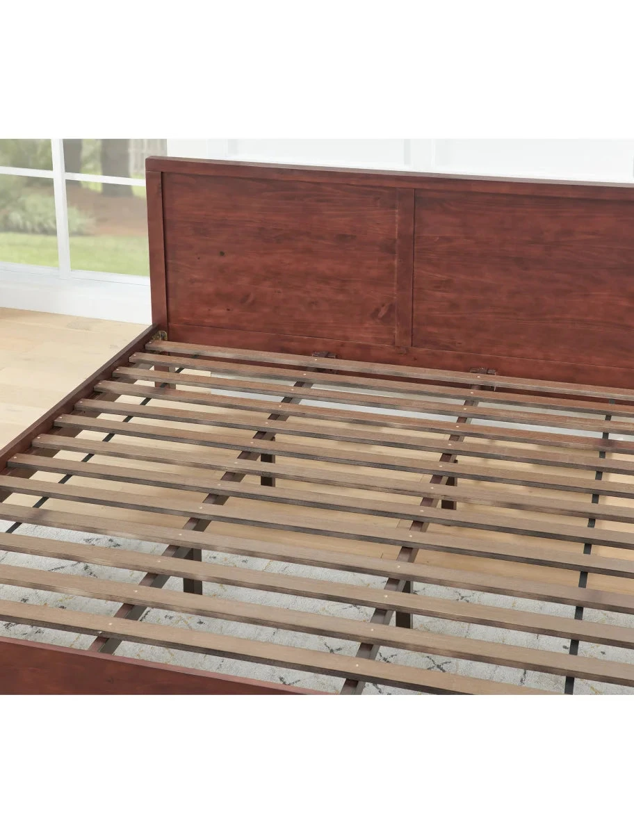 • Platform bed features full wood slat system; box spring not required