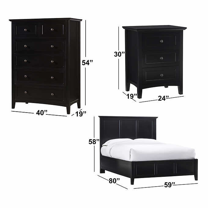 • Nightstand: 24” W x 19” D x 30” H; Weight: 67 lbs.