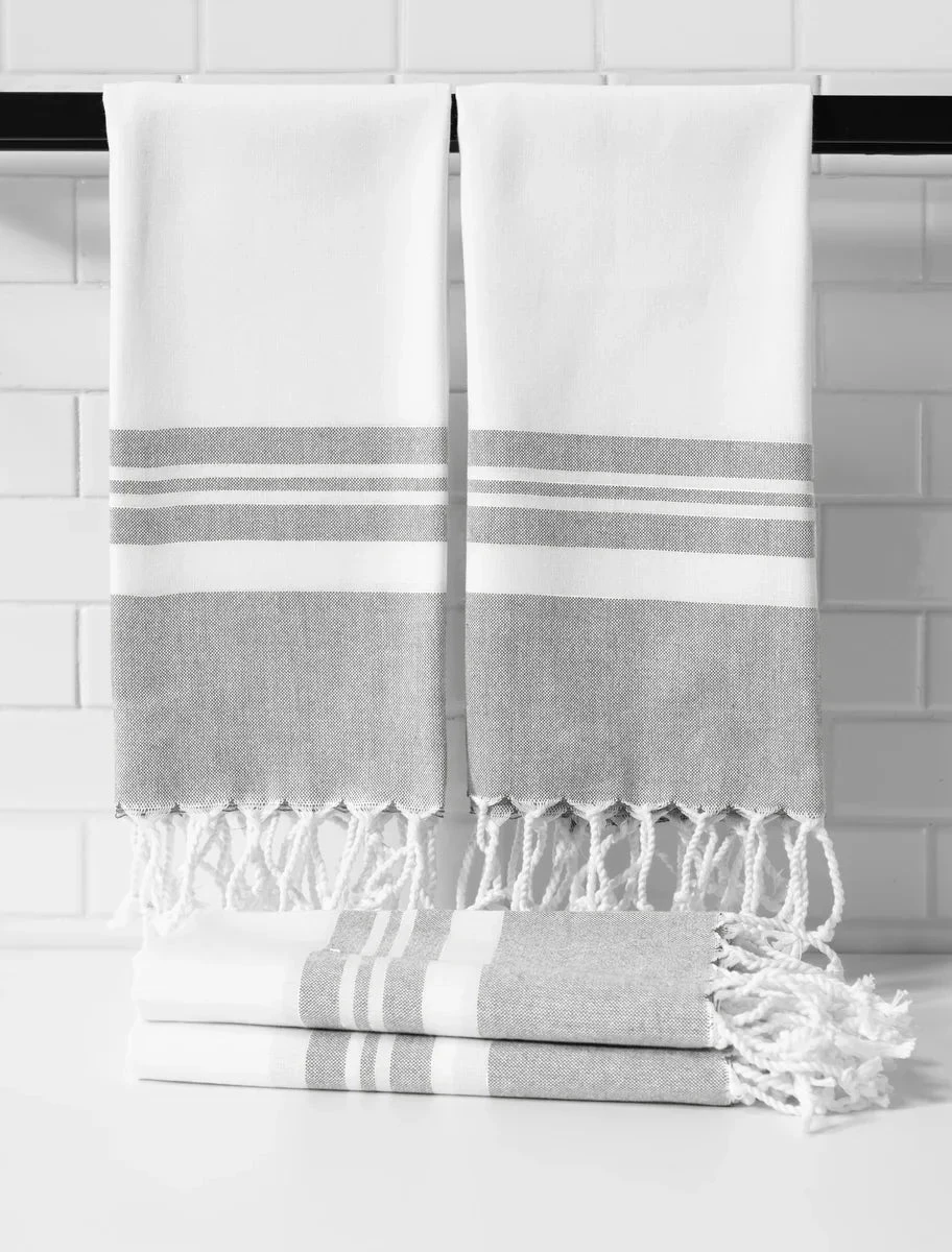 Soft against your skin, these Peshtemal towels are Hammam-style towels inspired by the legendary spas of Turkey. As an alternative to the standard terry cloth towel, these Peshtemal towels are flat and tightly woven for strength and durability. Woven by artisans from 100% premium cotton on traditional looms, these high-quality towels feature a hand-knotted fringe that are lightweight, very absorbent, quick drying, and perfect for traveling as they take up so little space.