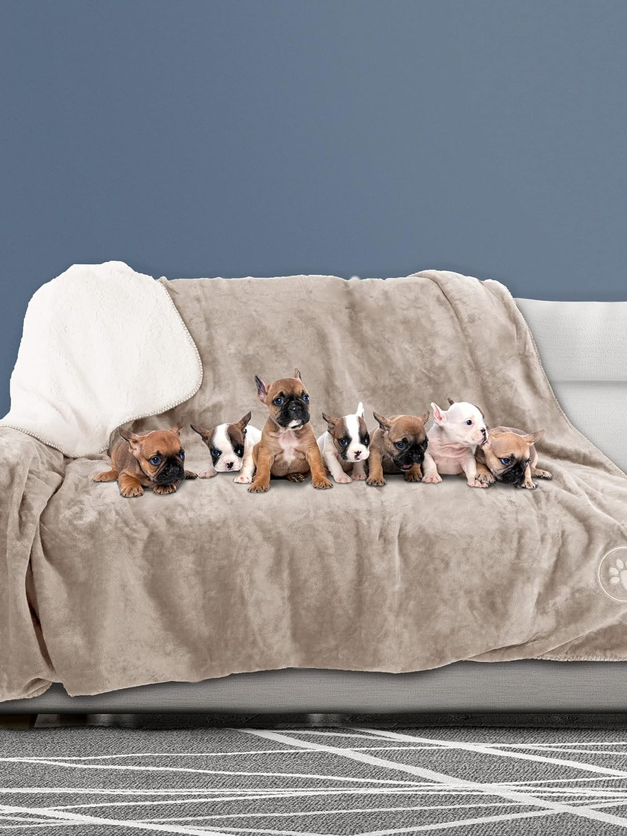 - DOG BLANKET WATERPROOF - This blanket has coated flannel on one side that repels water, and absorbent Sherpa fleece on the other side, effectively stopping liquid from seeping through. This waterproof blanket is also perfect for cats.