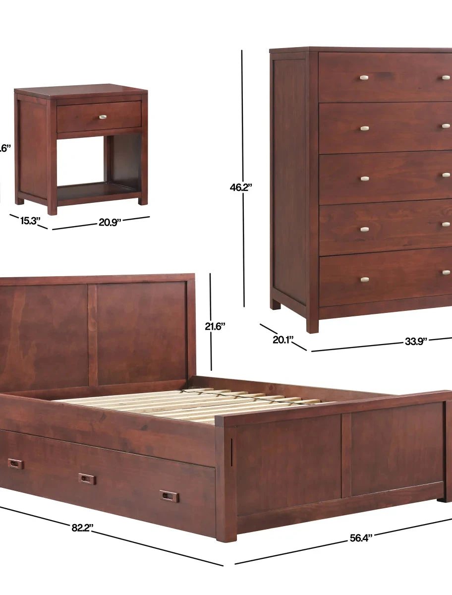 - 3-piece Set Includes: Full Storage Bed with Trundle, Nightstand, and Dresser