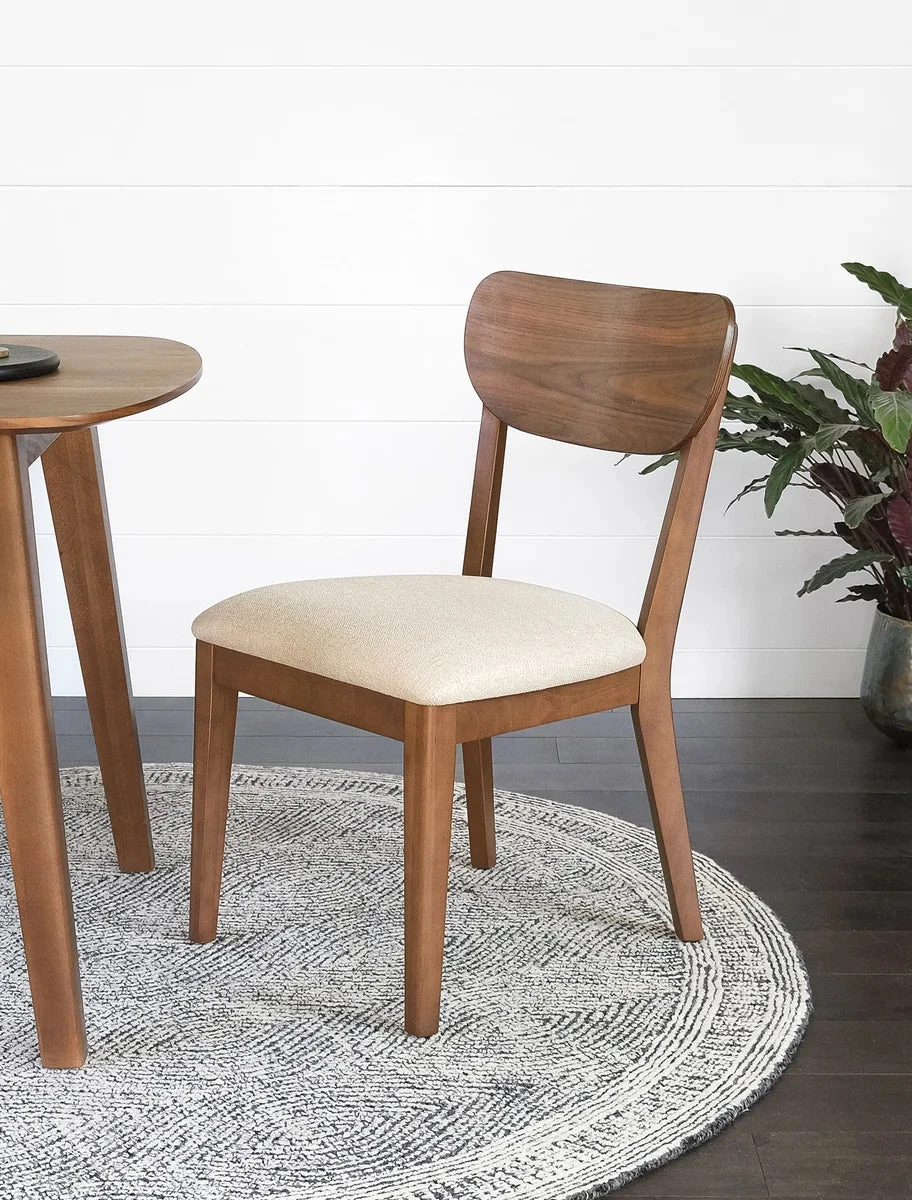 Beautiful and practical. The Point Reyes dining chair 2-pack from Pike & Main showcases simplicity with natural variation. Constructed of sturdy beech wood and walnut veneer, each dining chair features a streamlined mid-century silhouette with comfortable upholstered cushion. Built to last and responsibly made with 100% FSC-certified wood.