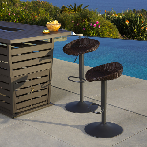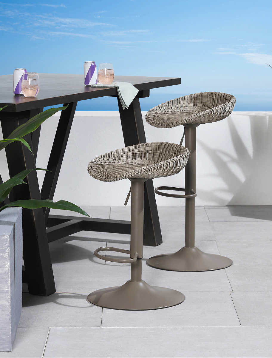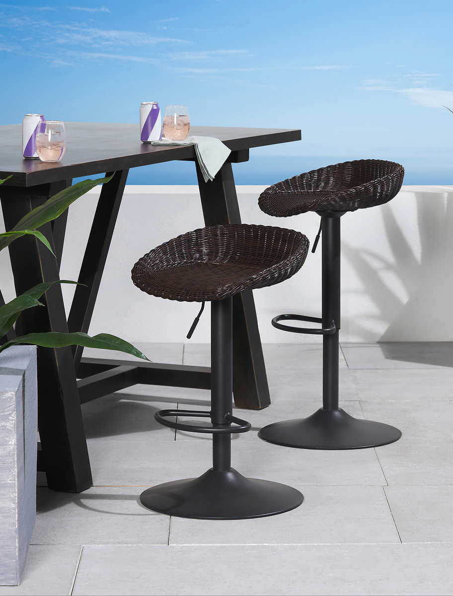 Perfect for casual hangouts in your backyard, these woven barstools are expertly crafted to last through the seasons. Outdoor-ready mixed-metal and wicker materials are chosen for their durability so you can spend more time creating memories outside. The airlift seat with integrated footrest has an adjustable height from 23 to 31 inches.