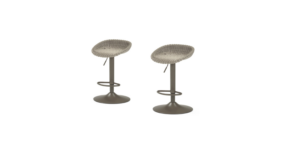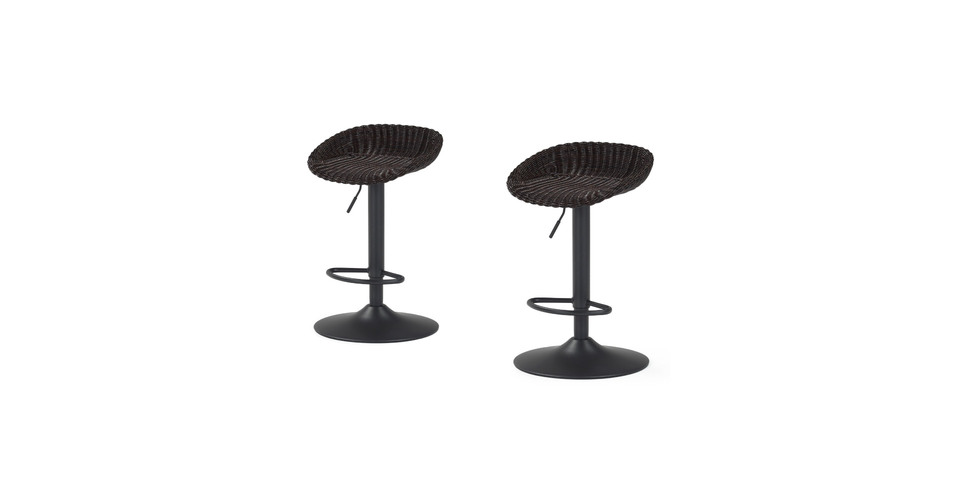 Set includes two woven barstools with adjustable seating height