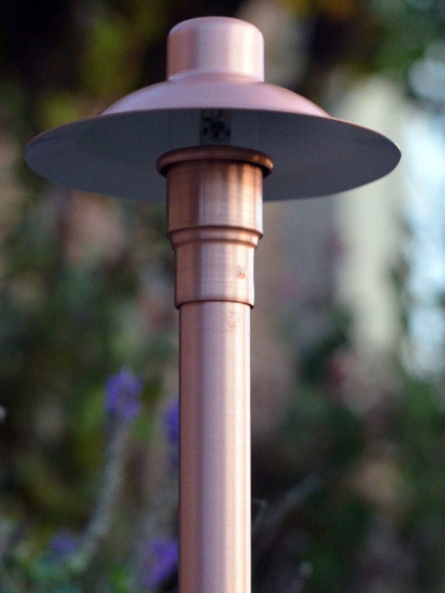 - Solid copper in Brushed Satin finish will patina over time to blend naturally with the landscape