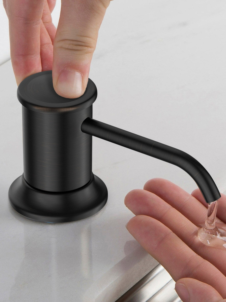 - Matching Soap Dispenser with Large-Capacity 17 oz. Bottle and Heavy-Duty Self-Priming Pump